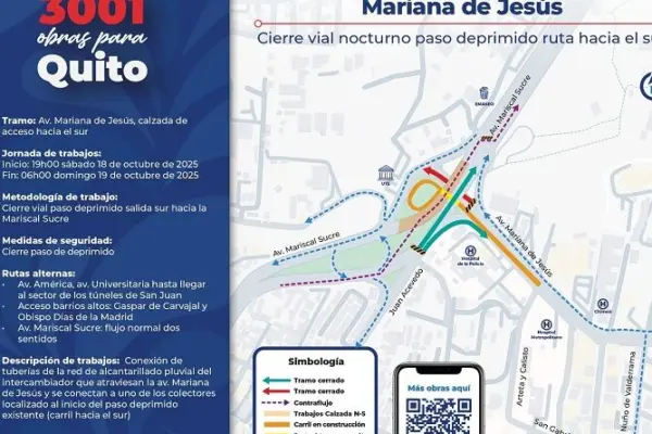 El municipio de Quito ha anunciado la intervención de seis puentes vehiculares estratégicos desde el 14 de octubre hasta el 11 de enero de 2026. Este trabajo de mantenimiento preventivo incluye los puentes de Mariscal Sucre, Machala, 10 de Agosto, Atahualpa, Av. Simón Bolívar y Ruta Viva. El objetivo es garantizar la seguridad de los…