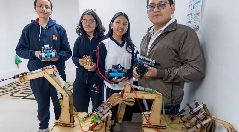 En la Unidad Educativa Sebastián de Benalcázar, un grupo de adolescentes participa activamente en un taller de robótica que se lleva a cabo todos los miércoles de 11h00 a 13h00. Este laboratorio ofrece a los estudiantes la oportunidad de explorar la tecnología a través de la creación y programación de robots, utilizando herramientas como impresoras 3D y cortadoras láser. En este espacio, la creatividad y el aprendizaje se combinan, permitiendo que los jóvenes transformen ideas en proyectos concretos.